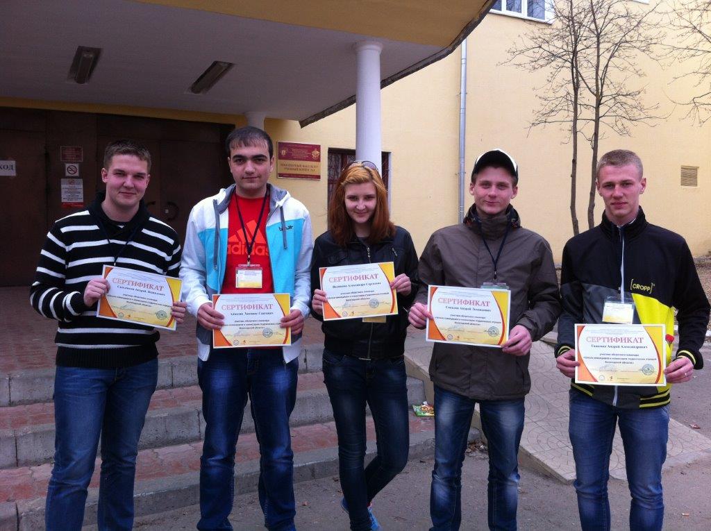 С 19 по 20 апреля 2014 года студенты техникума Тищенко Андрей, Авазян Хнкянос, Сальников Андрей, Соколов Андрей, Вазюкова Александра приняли участие в областном семинаре «Школа командиров и комиссаров студенческих трудовых отрядов» 2014 года, который проходил на площадке ВГМХ им. Верещагина п. Молочное.