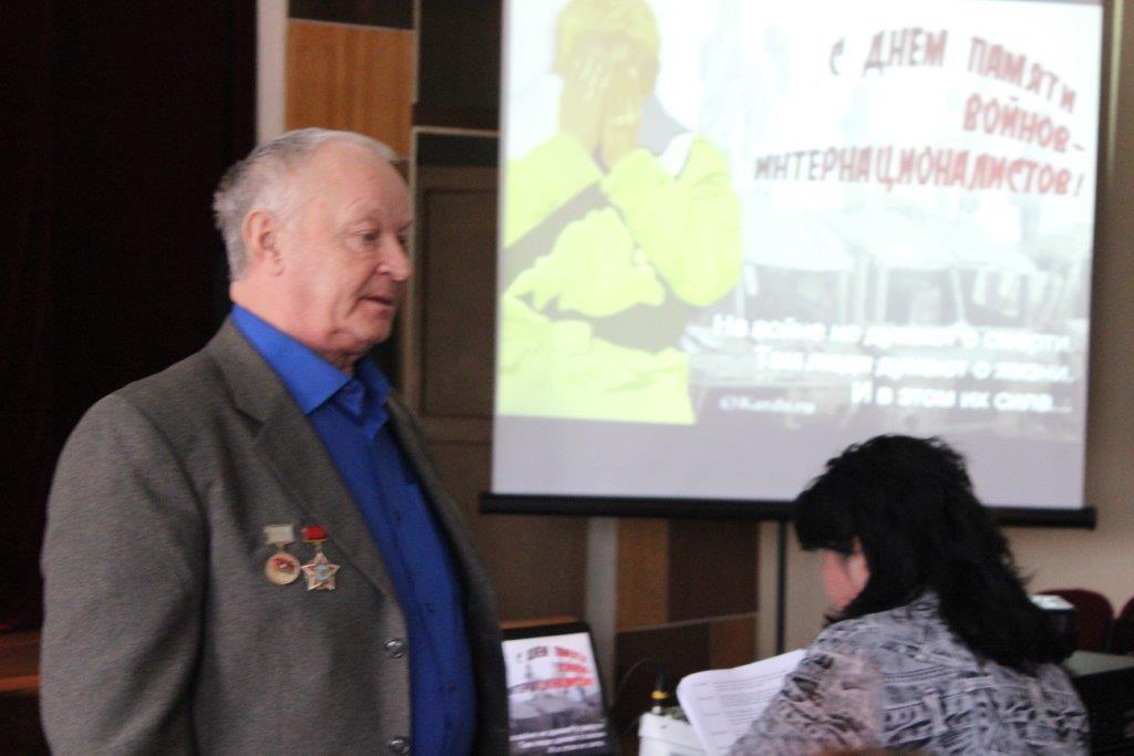 13 февраля в городском музее обучающиеся стали участниками мероприятия «Афганистан наша память и боль». 15 февраля в актовом зале техникума состоялся классный час «Афганский шрам советского солдата», в котором принял участие майор запаса Моргунов В.А., участник боевых действий в Афганистане. Он поделился своими воспоминаниями о тех днях службы, отвечал, на интересующие рябят вопросы.