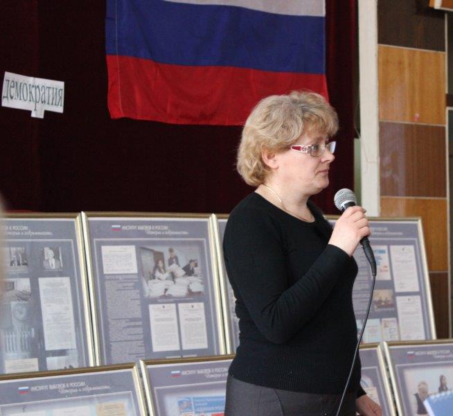Об истории и структуре Законодательного Собрания Вологодской области рассказала член территориальной избирательной комиссии Грязовецкого муниципального района Ольга Вениаминовна Баранова. В своей презентации она представила много интересного материала: количество принятых законов и обращений граждан, средний возраст и образование депутатов, членов Совета Федераций от Вологодской области и депутатов Законодательного Собрания от Грязовецкого района.