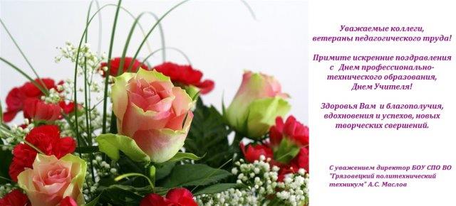 3 октября в актовом зале техникума прошло торжественное мероприятие, посвященное Дню профессионально-технического образования, Международному Дню Учителя. Слова благодарности за самоотверженный труд, педагогическую мудрость, безграничную любовь к детям звучали в этот день в зале. По сложившейся традиции на праздник были приглашены ветераны педагогического труда. Много теплых слов было сказано в адрес людей старшего поколения, посвятивших себя профессии учитель. Работа педагогов, мастеров производственного обучения, учебно-вспомогательного персонала была отмечена грамотами областного и районного значения. Концертную программу подарили коллективу студенты под руководством педагога дополнительного образования Вазюковой Валерии Николаевны.