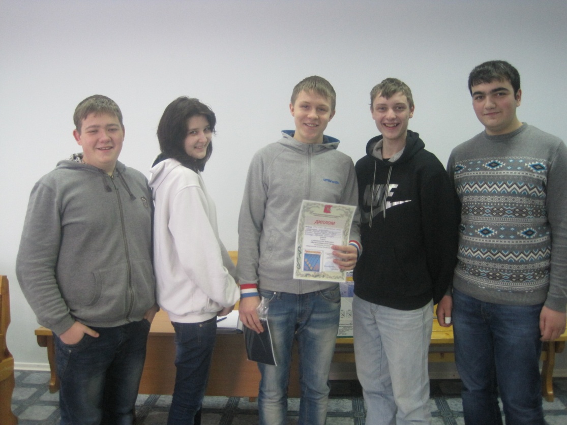 Руководитель команды: Людмила Александровна Маликова. Состав команды: Карташов Дмитрий, 231 группа, Айвазян Хнкянос, 221 группа, Серов Олег, 221 группа.