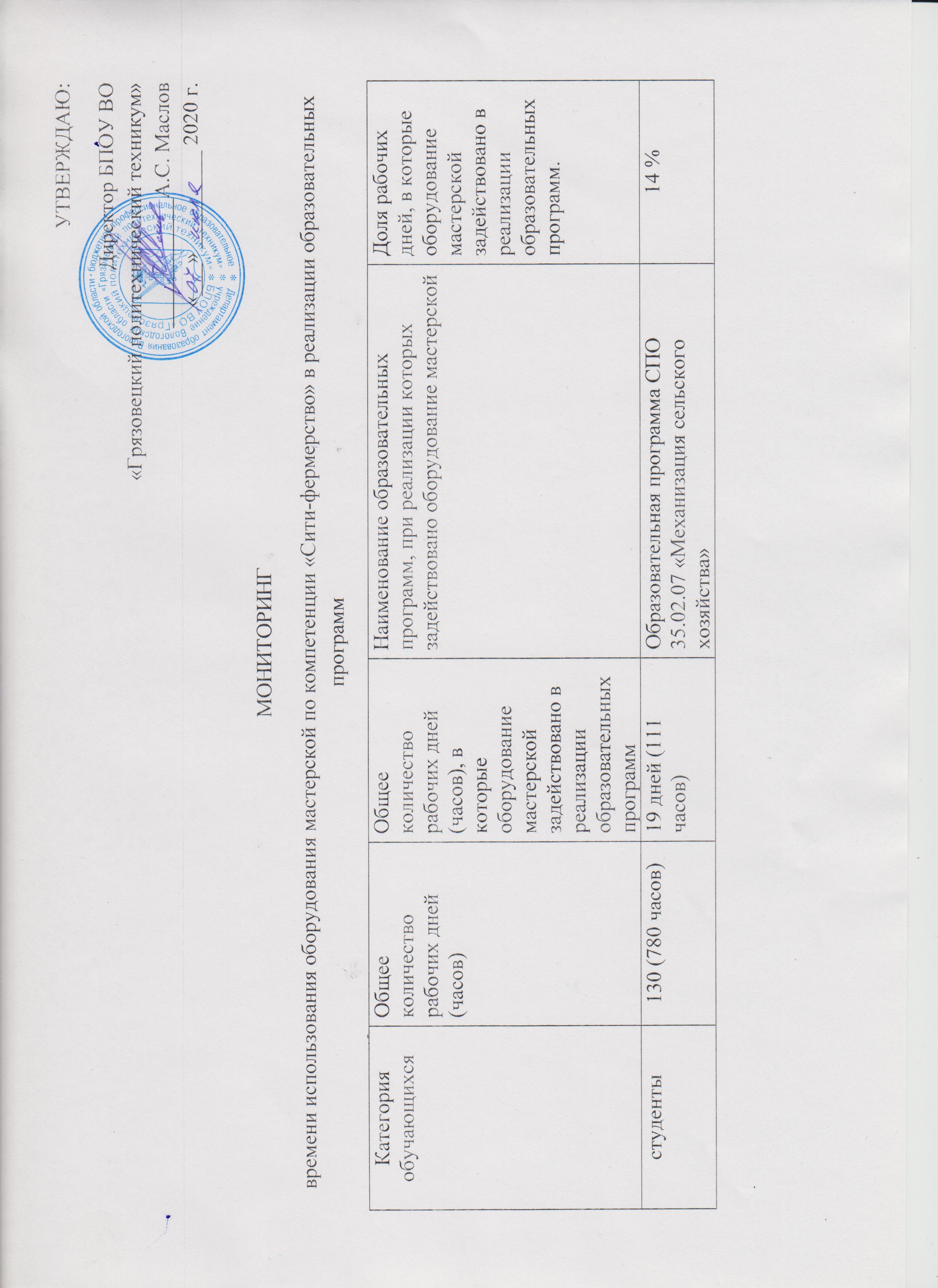 В 2020 году системе профессионально-технического образования исполнилось 80 лет. И символично, что именно в этом году состоялось открытие Мастерских в рамках реализации национального проекта «Образование» и федерального проекта «Молодые профессионалы» по пяти компетенциям «Сити-фермерство», «Геномная инженерия», «Сельскохозяйственные биотехнологии», «Ветеринария», «Эксплуатация сельскохозяйственных машин».